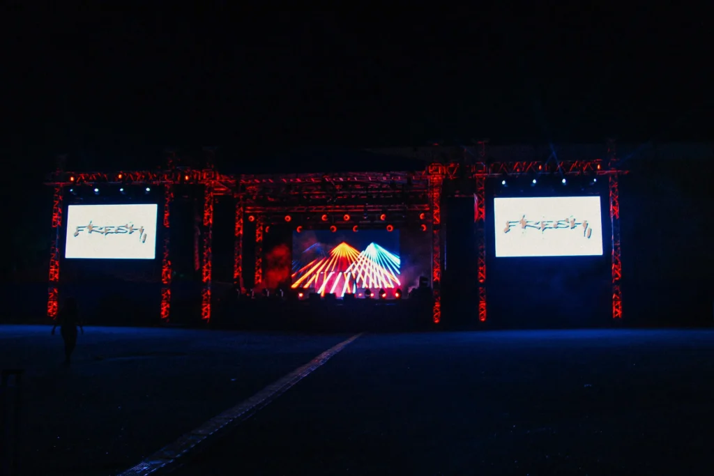 The gates opened at 8:00 PM, welcoming an eager crowd. By the time the show officially started at 10:00 PM, the stadium was pulsing with energy. The visuals and stage production, expertly powered by Fresh Entertainment, were dynamic and intense. Masicka took to the stage, looking every bit the star he is, draped in heavy chains and jewelry, delivering hit after hit to a roaring crowd.