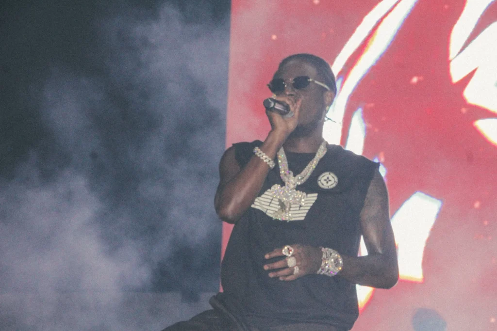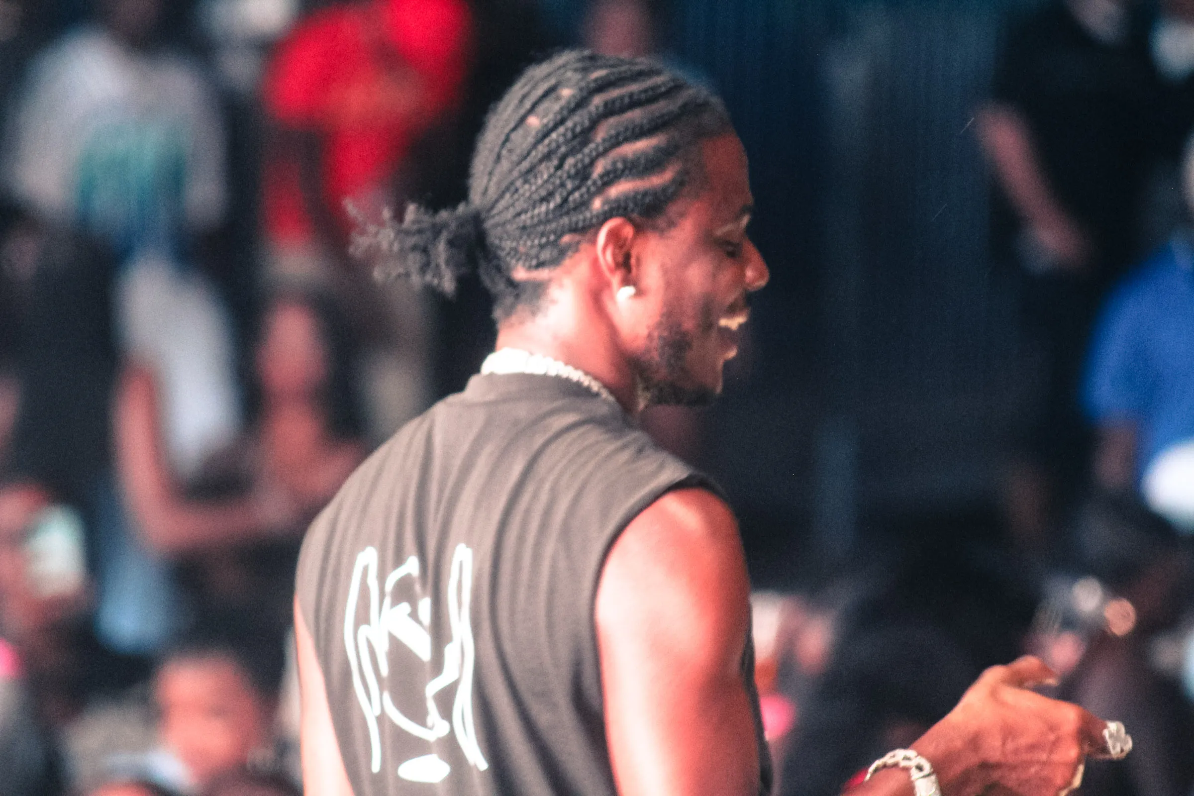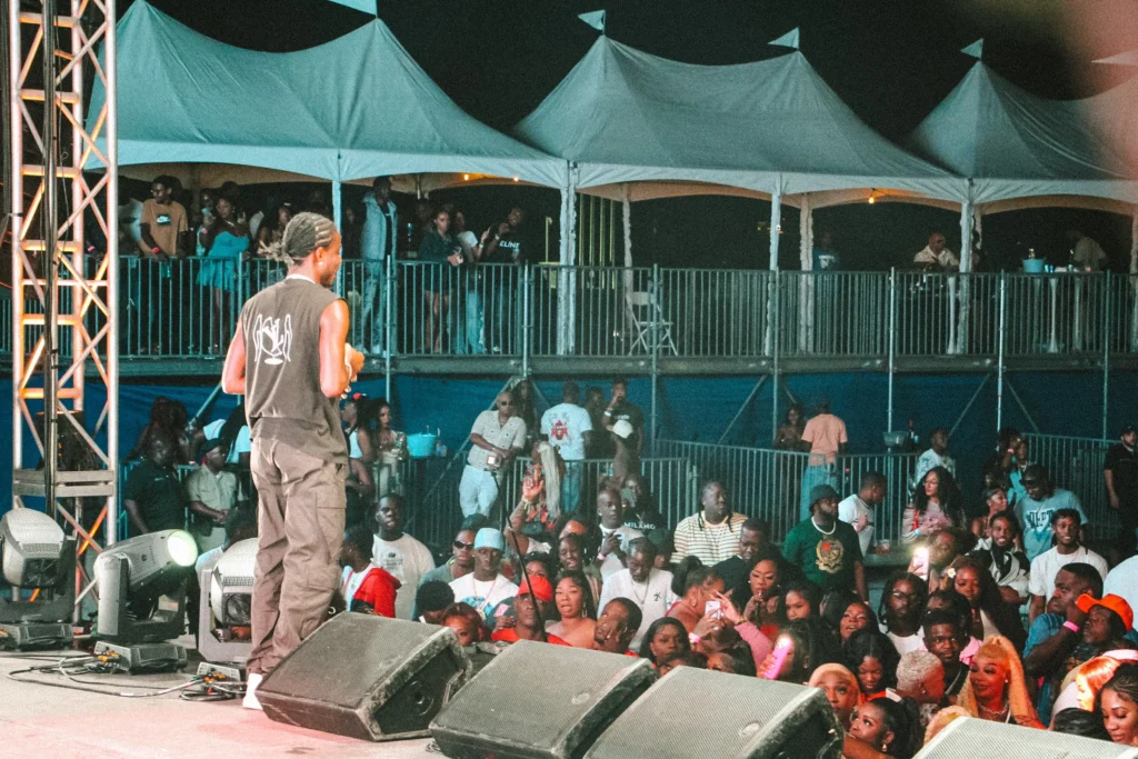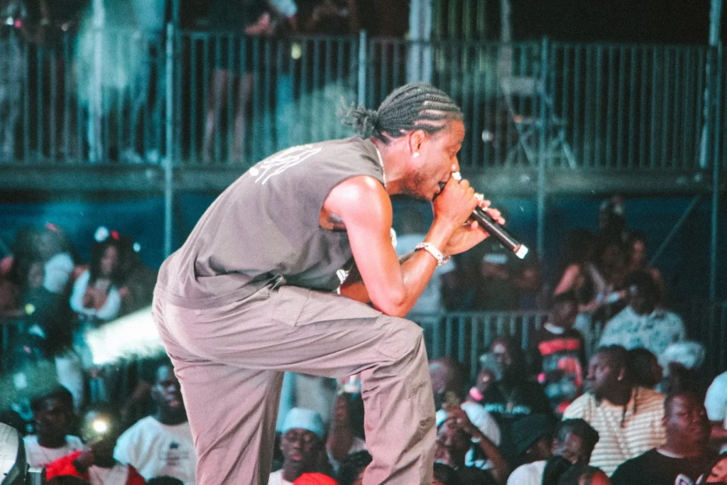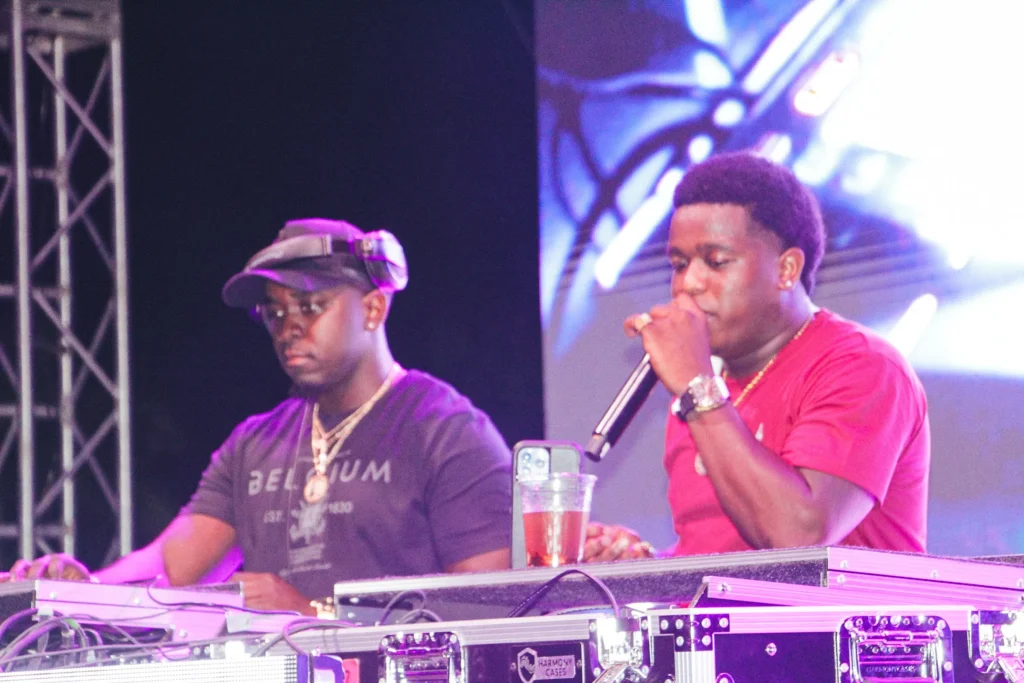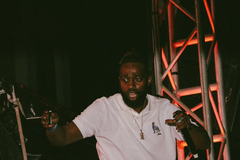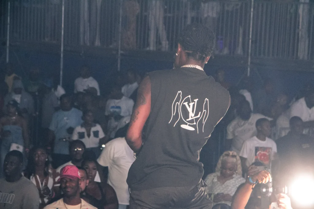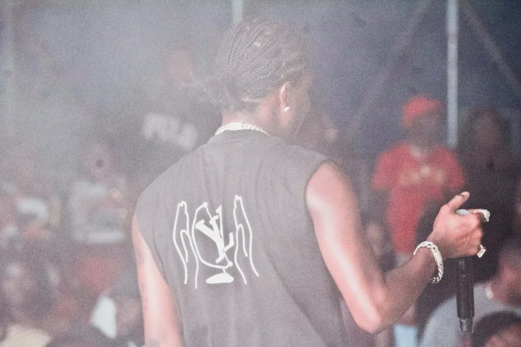 The concert lighting was vivid, bathing the stage in dramatic shades of red and pink, creating a powerful backdrop for Masicka’s high-energy set. He connected with the audience, showcasing his signature flow and stage presence, keeping the energy high throughout the night.