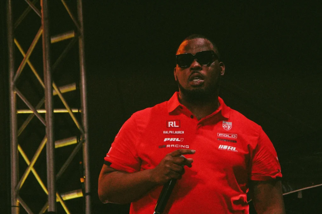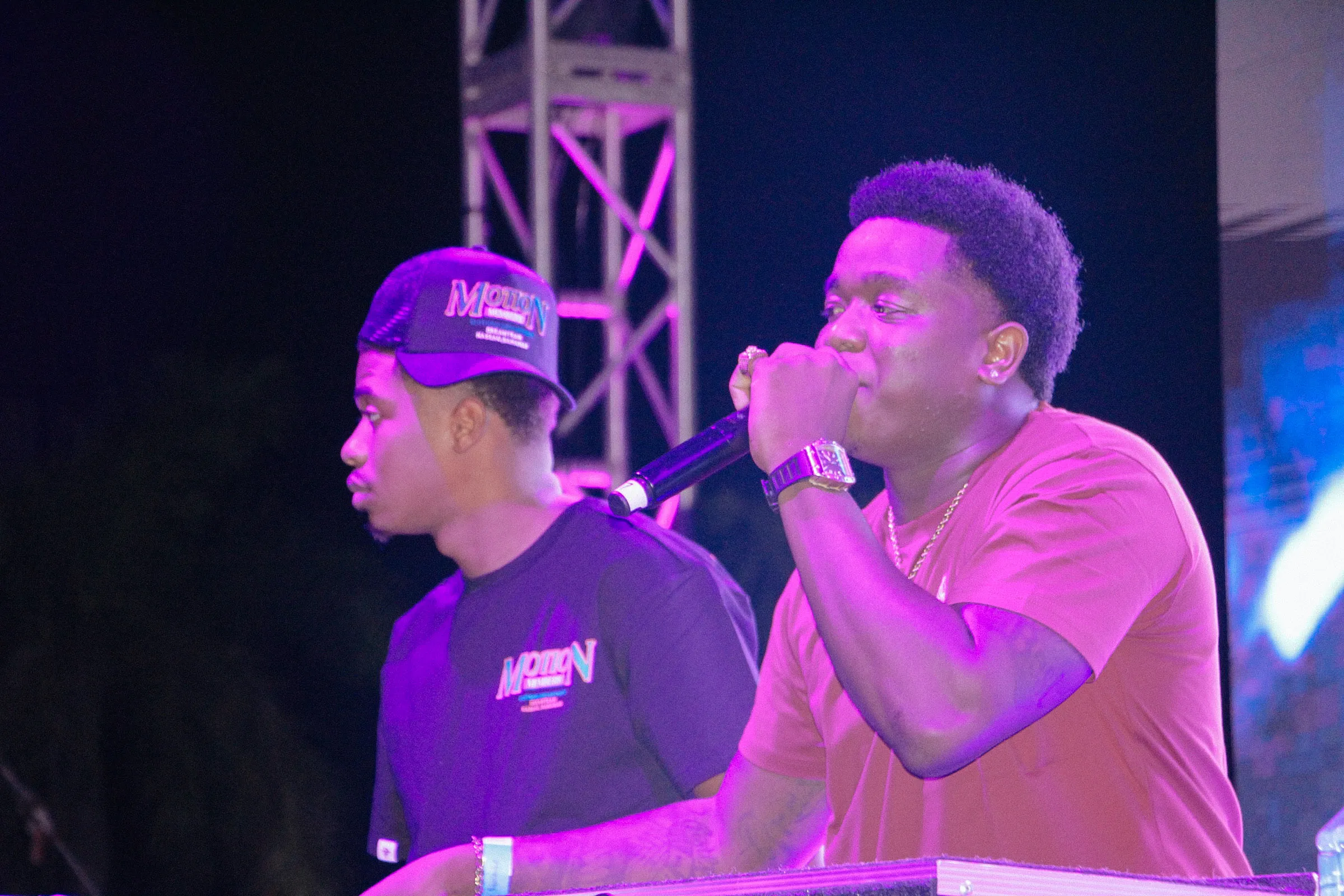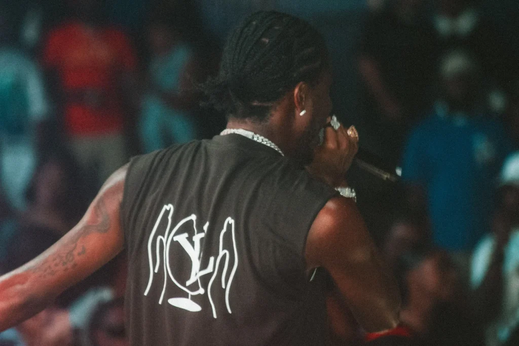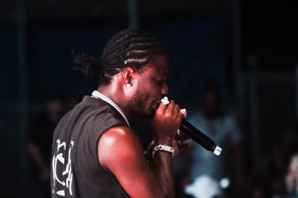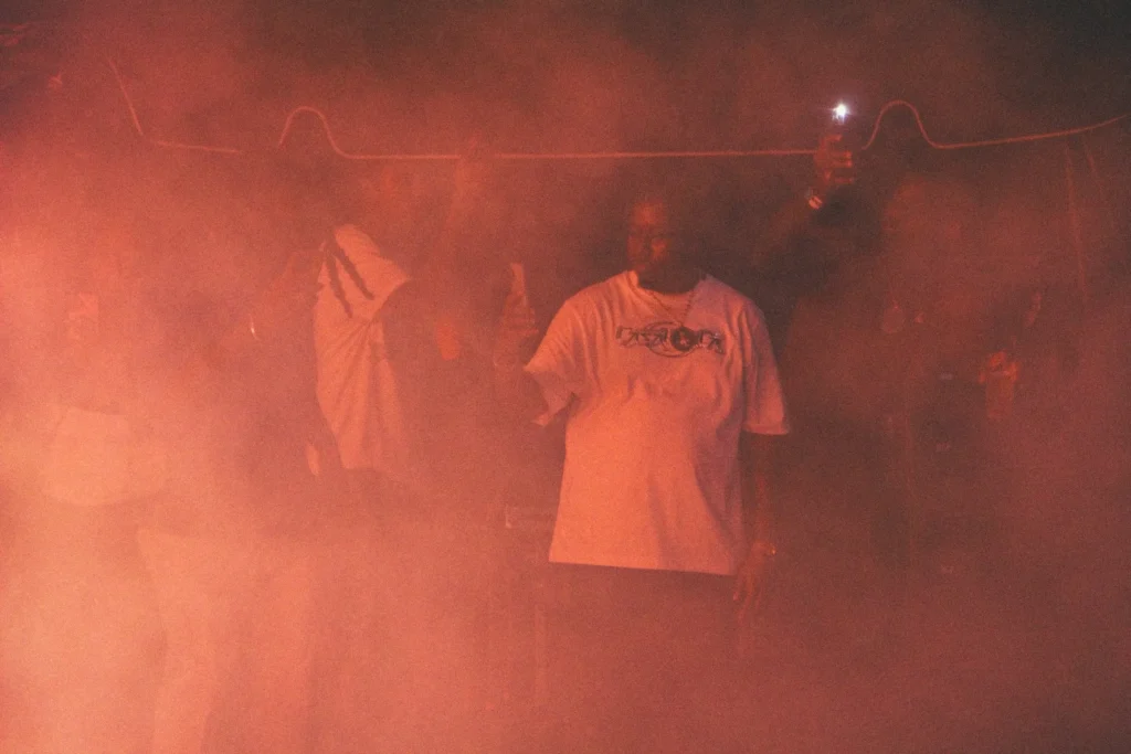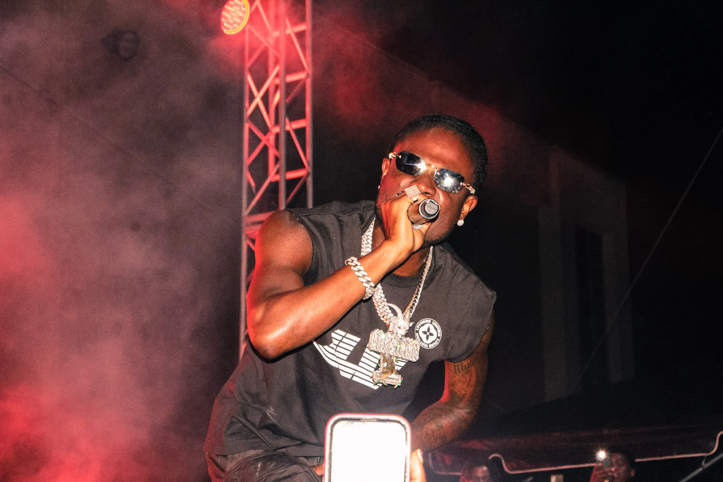 The concert lighting was vivid, bathing the stage in dramatic shades of red and pink, creating a powerful backdrop for Masicka’s high-energy set. He connected with the audience, showcasing his signature flow and stage presence, keeping the energy high throughout the night.