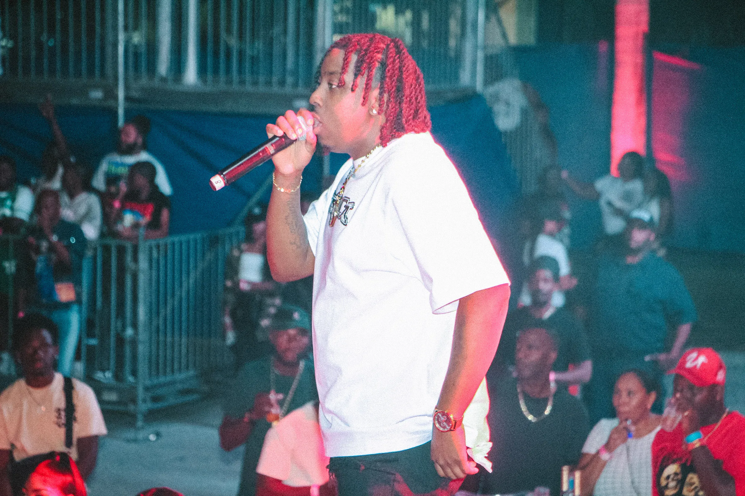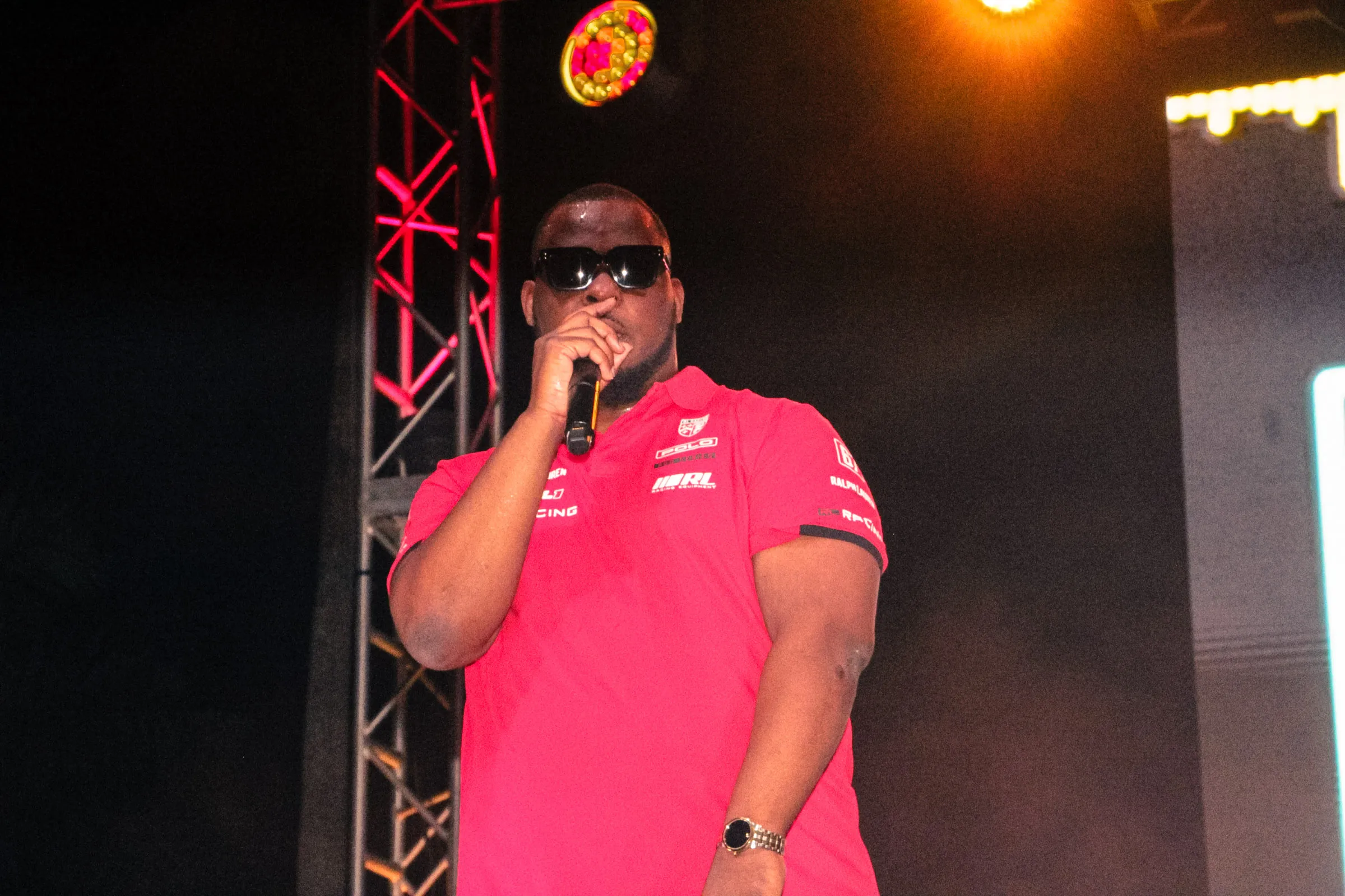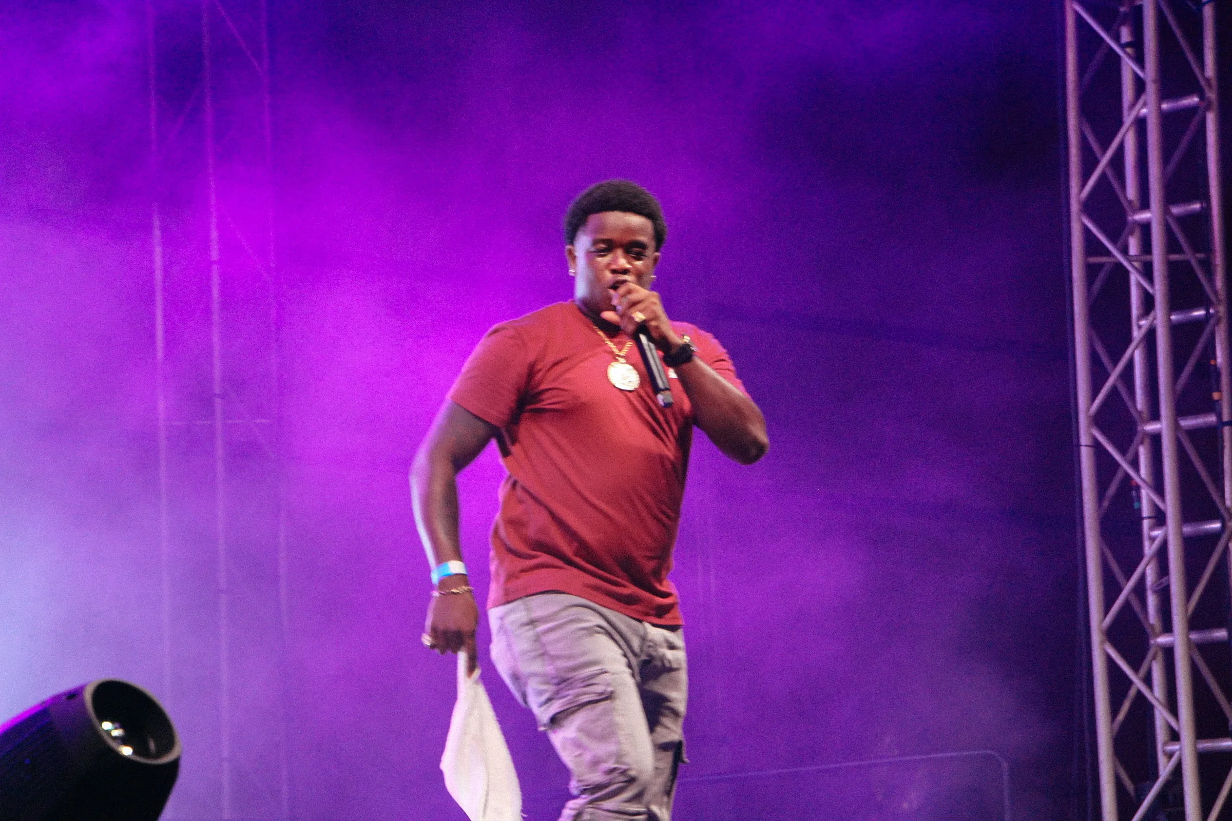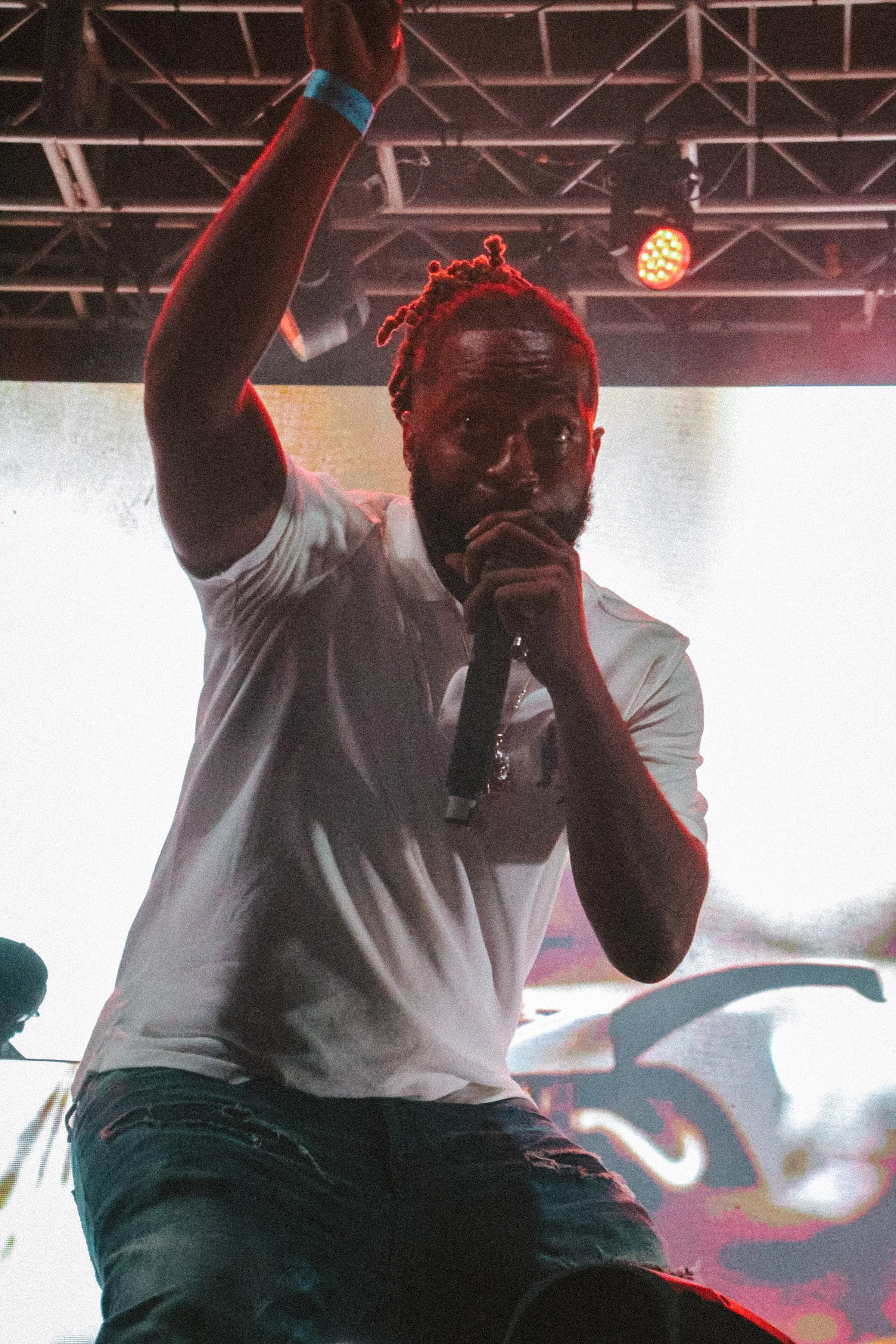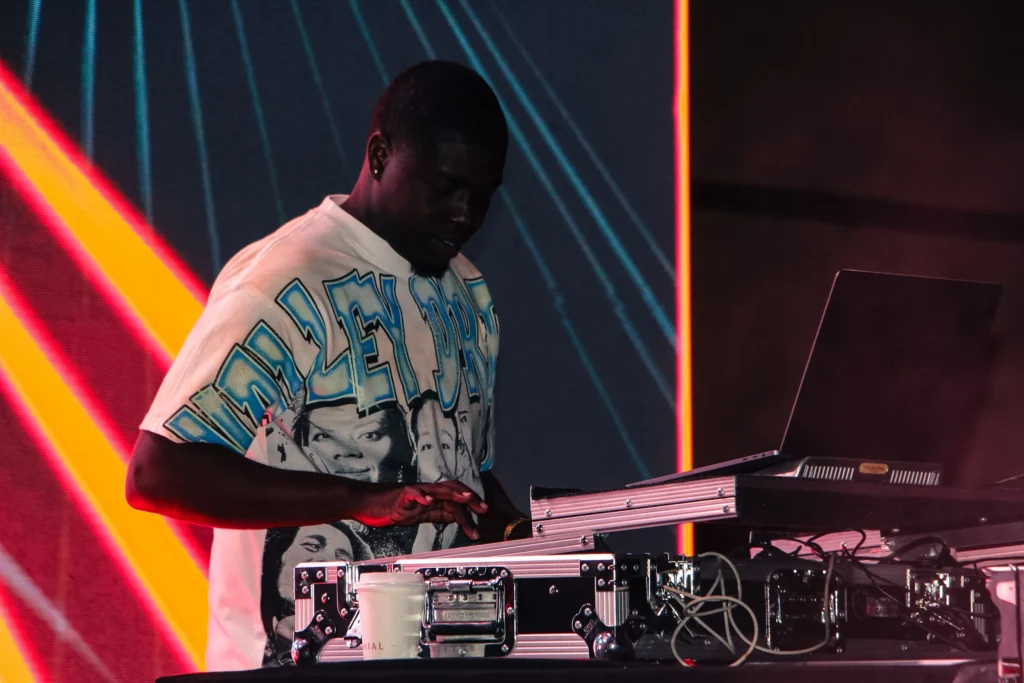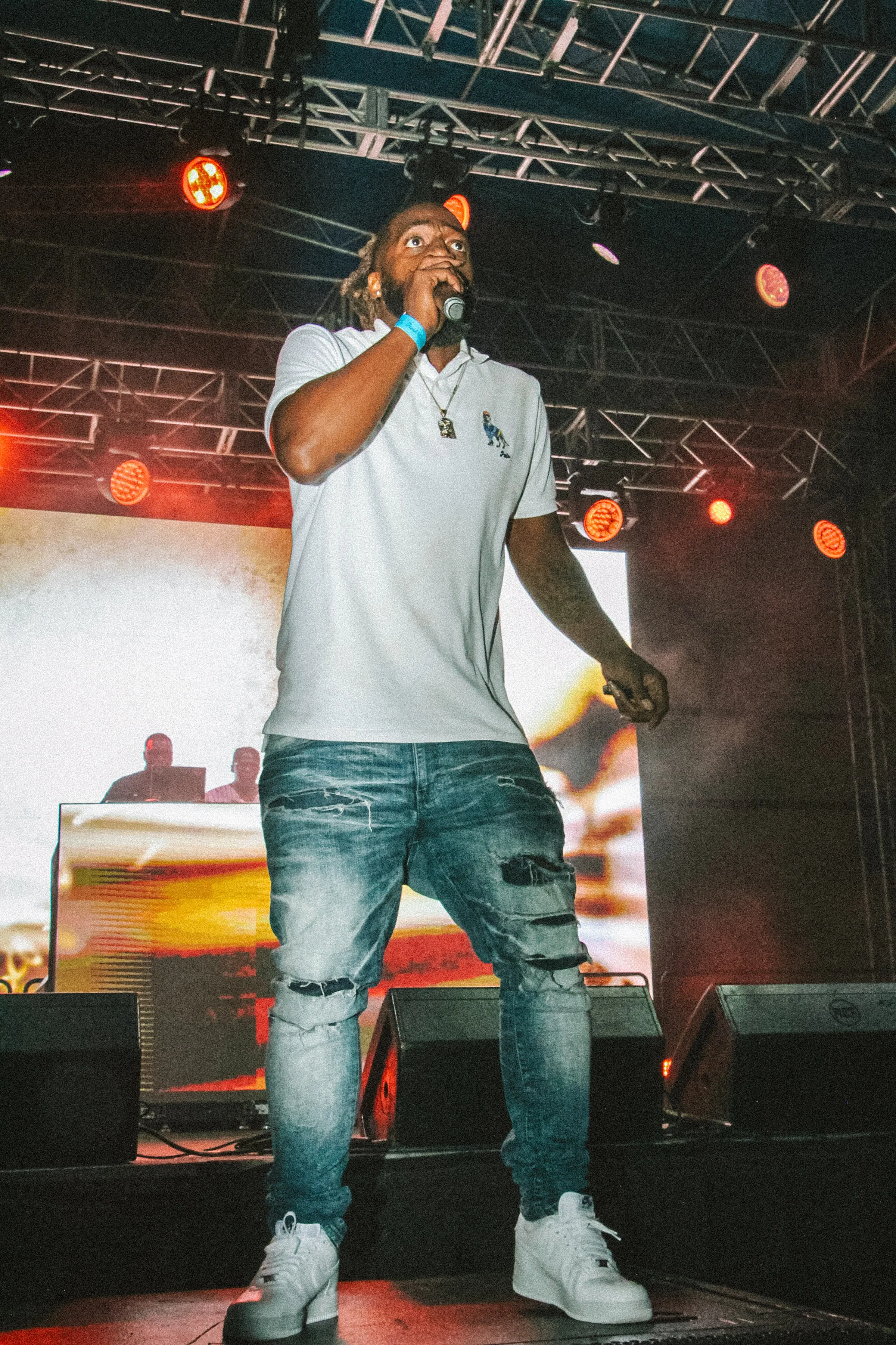 The concert lighting was vivid, bathing the stage in dramatic shades of red and pink, creating a powerful backdrop for Masicka’s high-energy set. He connected with the audience, showcasing his signature flow and stage presence, keeping the energy high throughout the night.