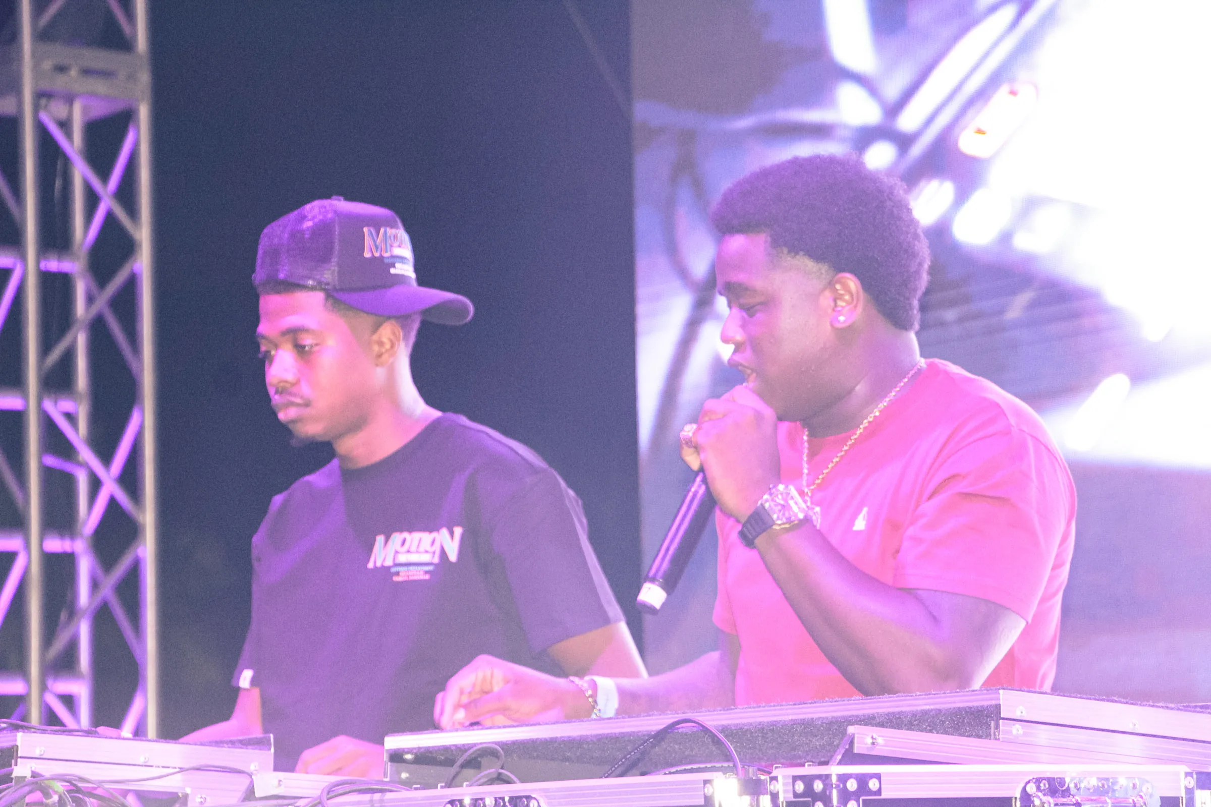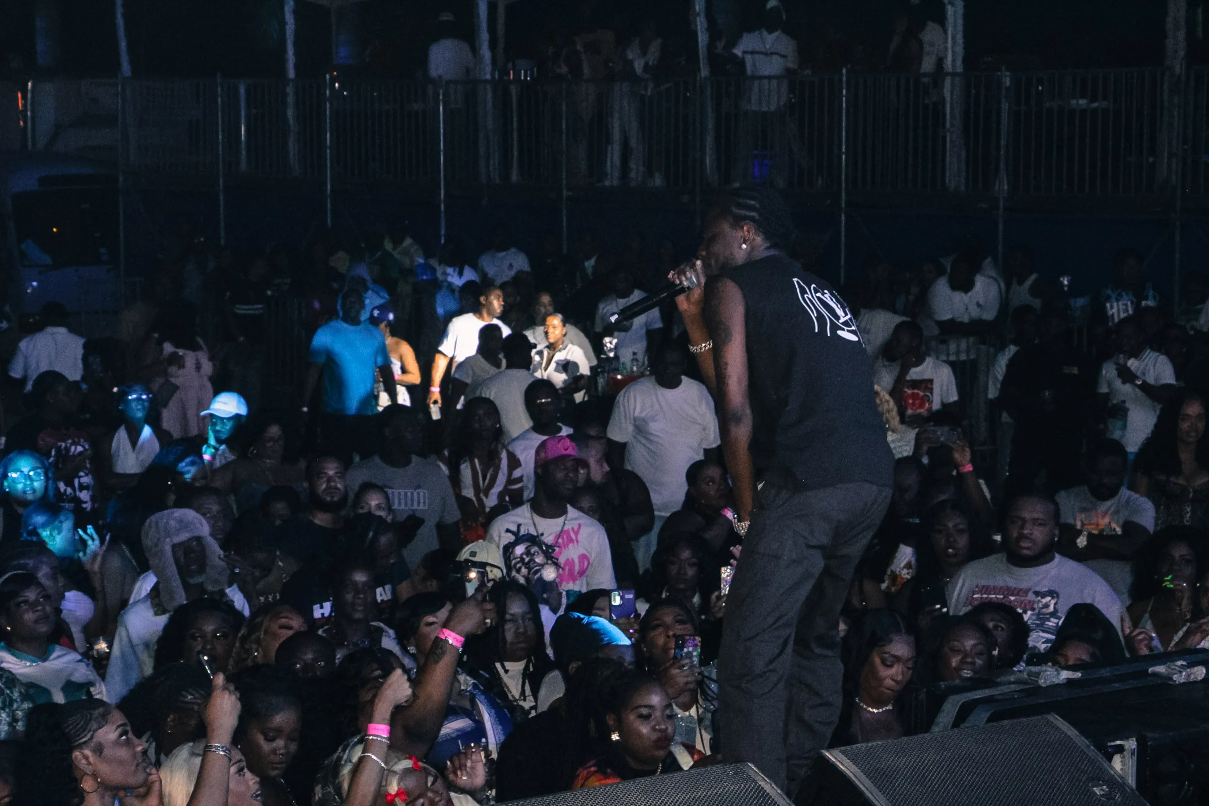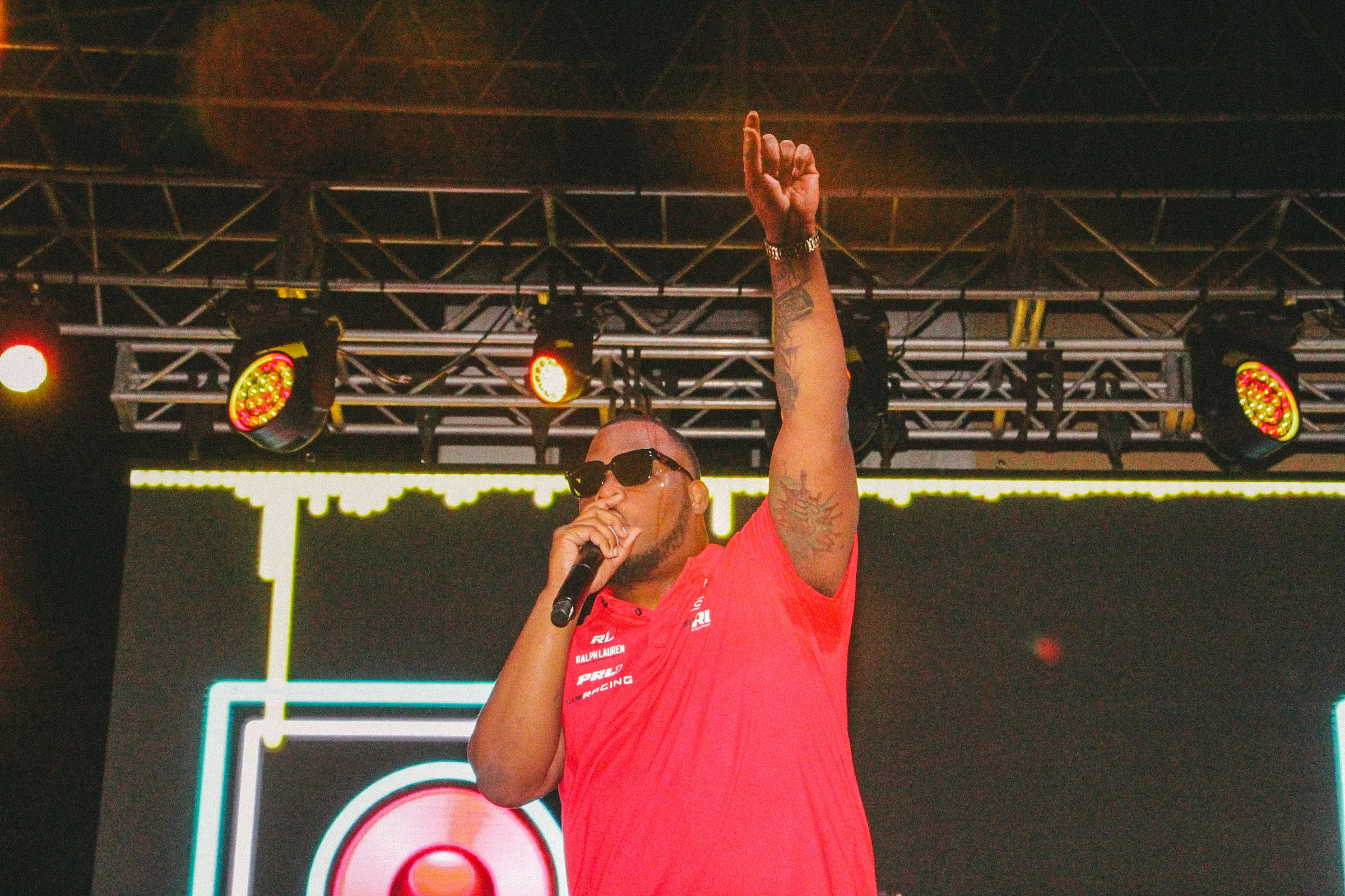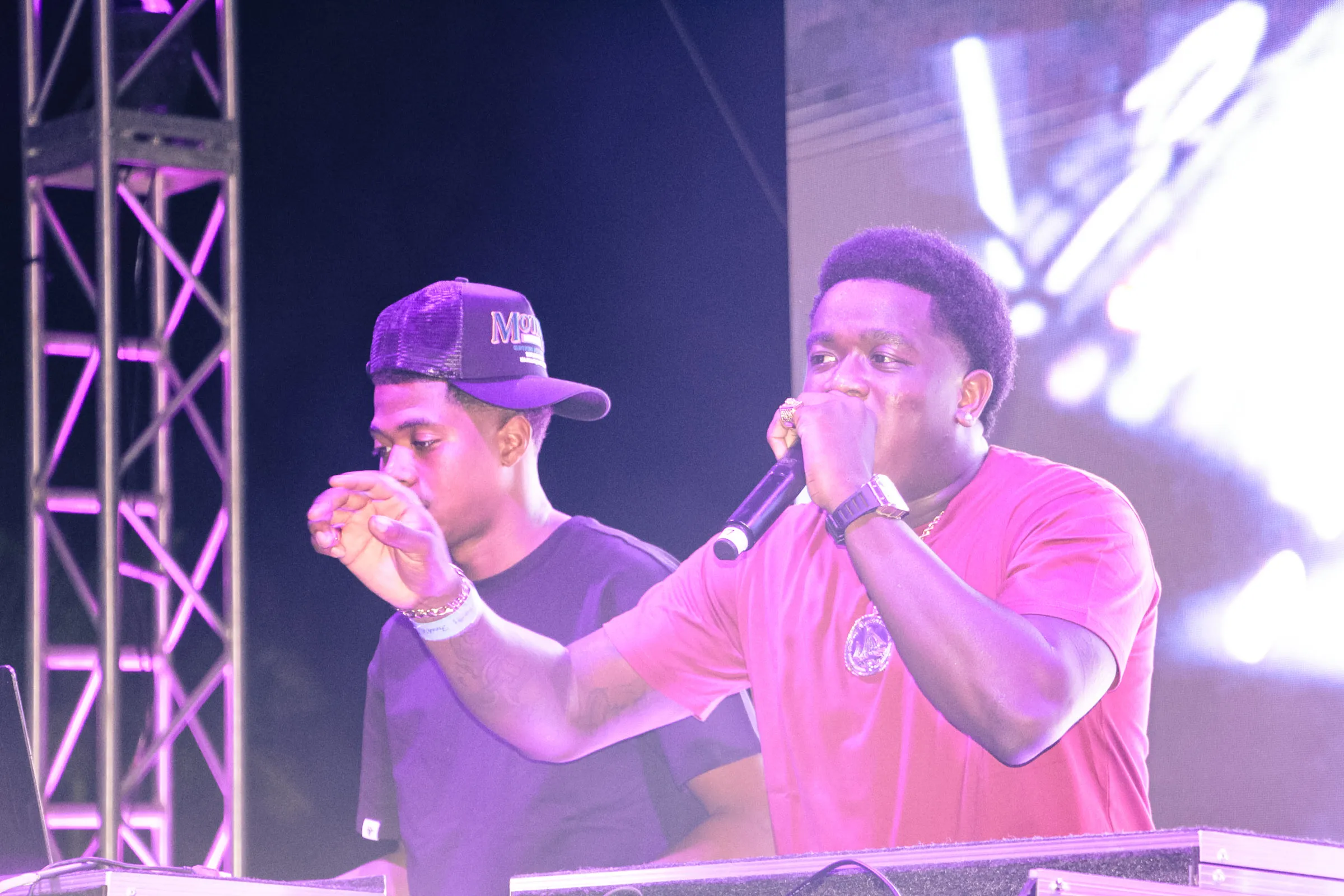 The concert lighting was vivid, bathing the stage in dramatic shades of red and pink, creating a powerful backdrop for Masicka’s high-energy set. He connected with the audience, showcasing his signature flow and stage presence, keeping the energy high throughout the night.