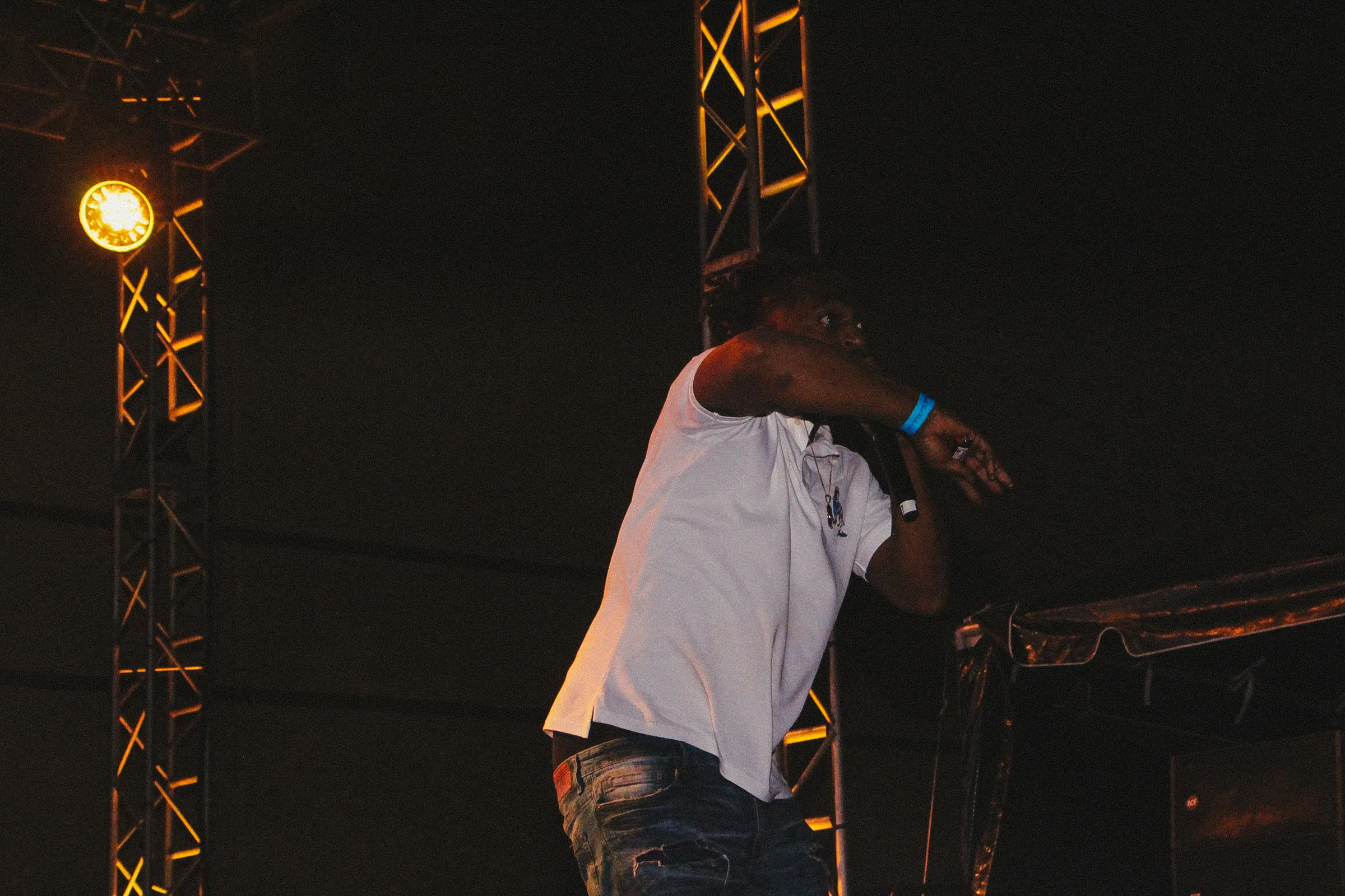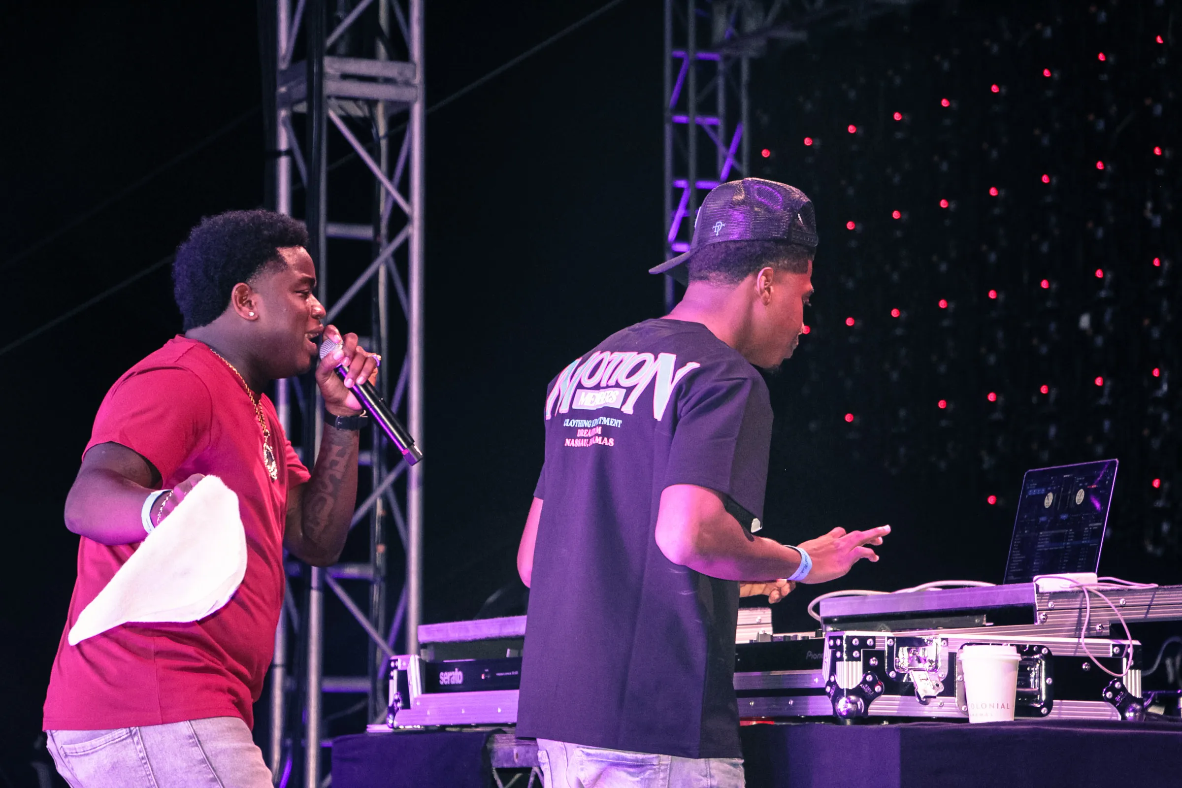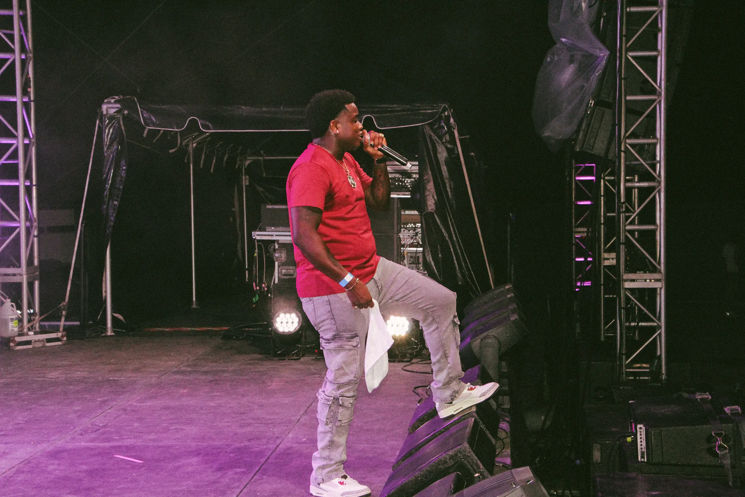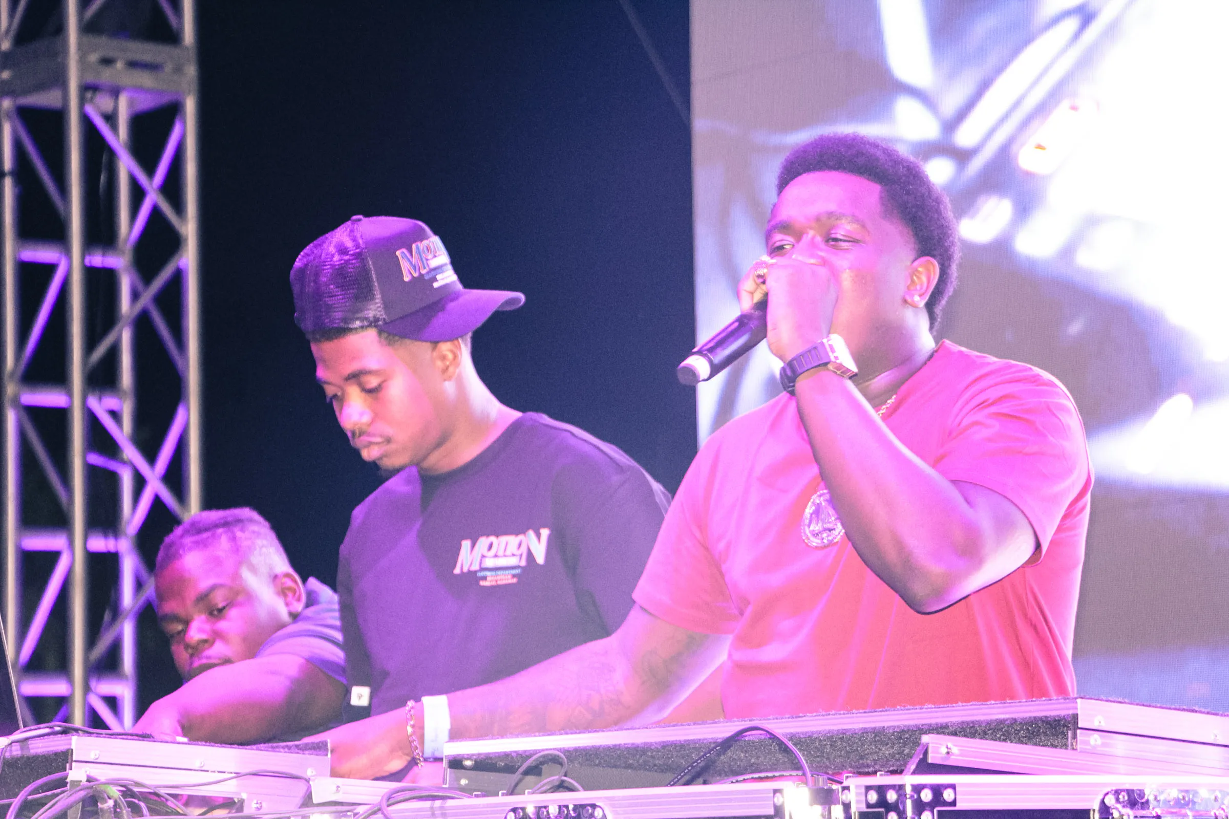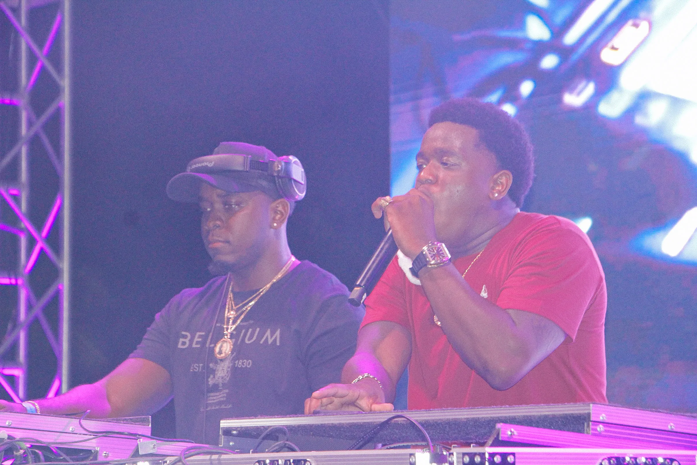 The concert lighting was vivid, bathing the stage in dramatic shades of red and pink, creating a powerful backdrop for Masicka’s high-energy set. He connected with the audience, showcasing his signature flow and stage presence, keeping the energy high throughout the night.