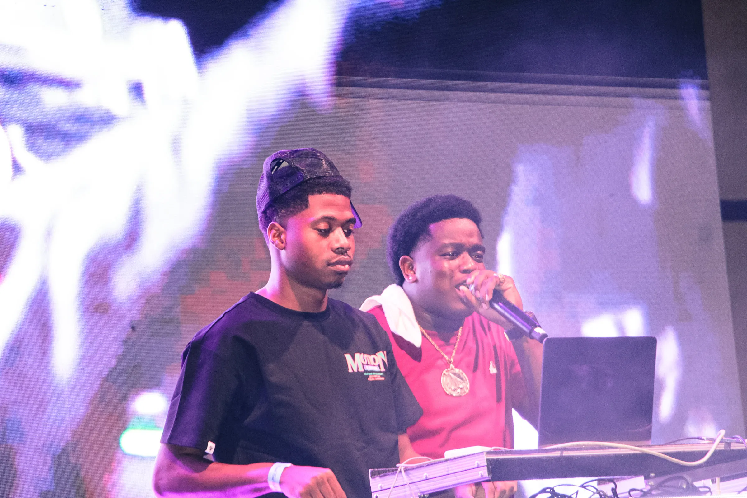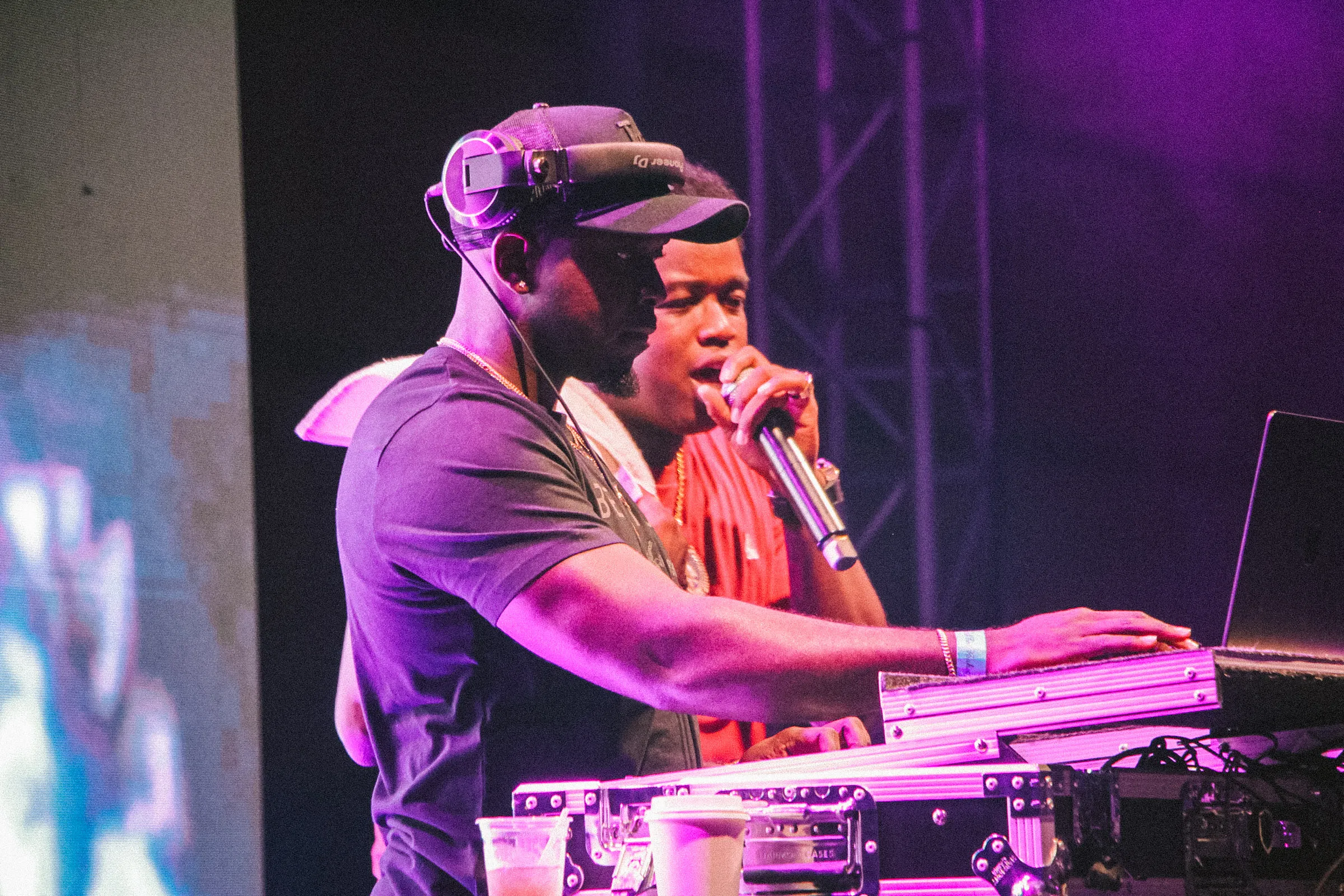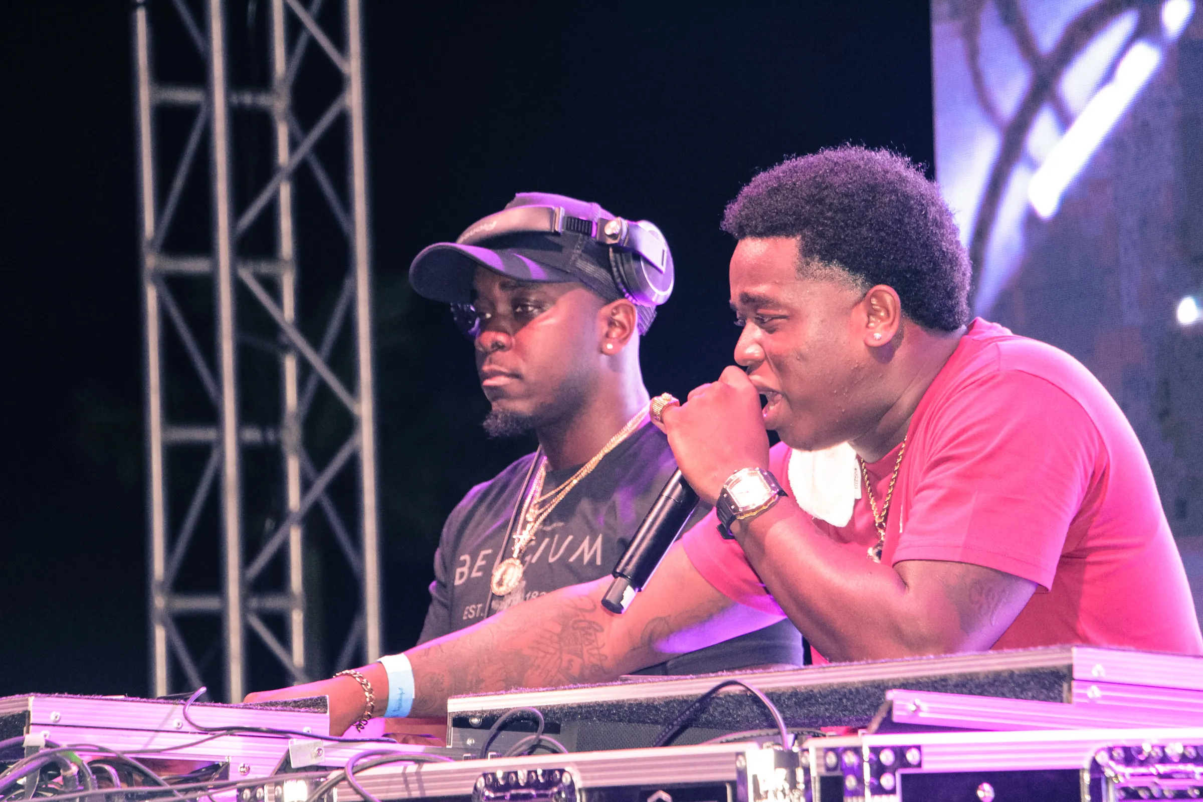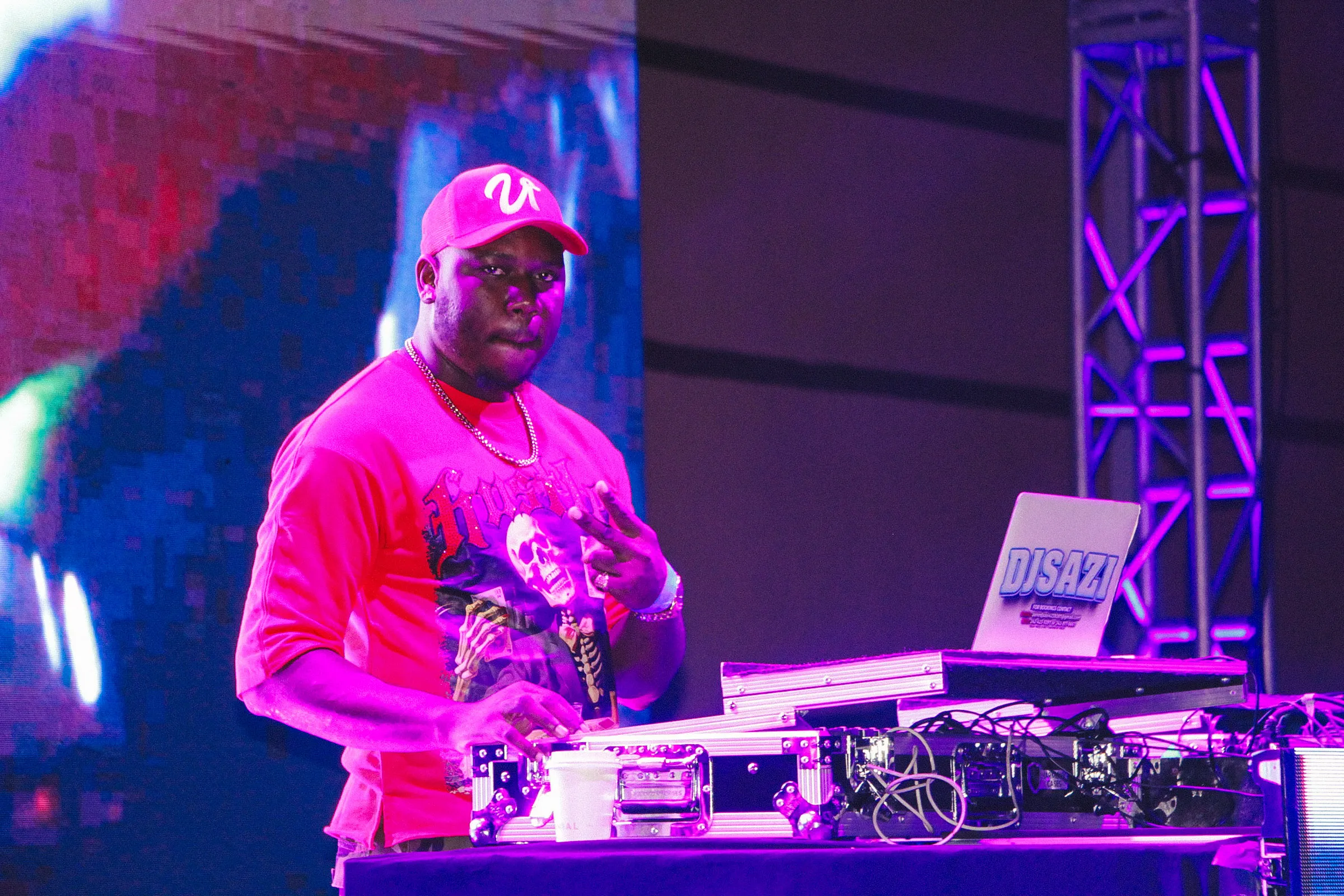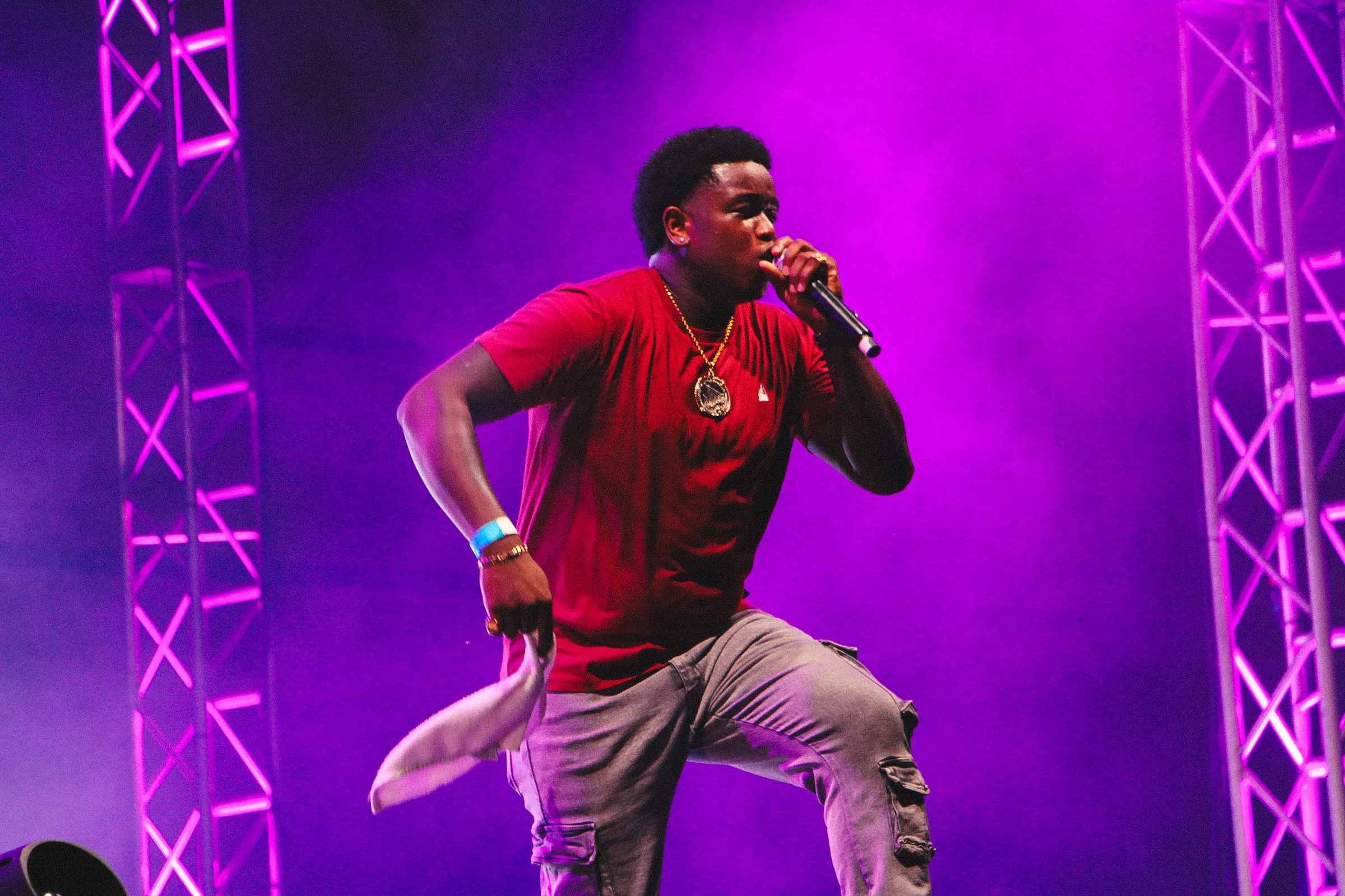 The concert lighting was vivid, bathing the stage in dramatic shades of red and pink, creating a powerful backdrop for Masicka’s high-energy set. He connected with the audience, showcasing his signature flow and stage presence, keeping the energy high throughout the night.