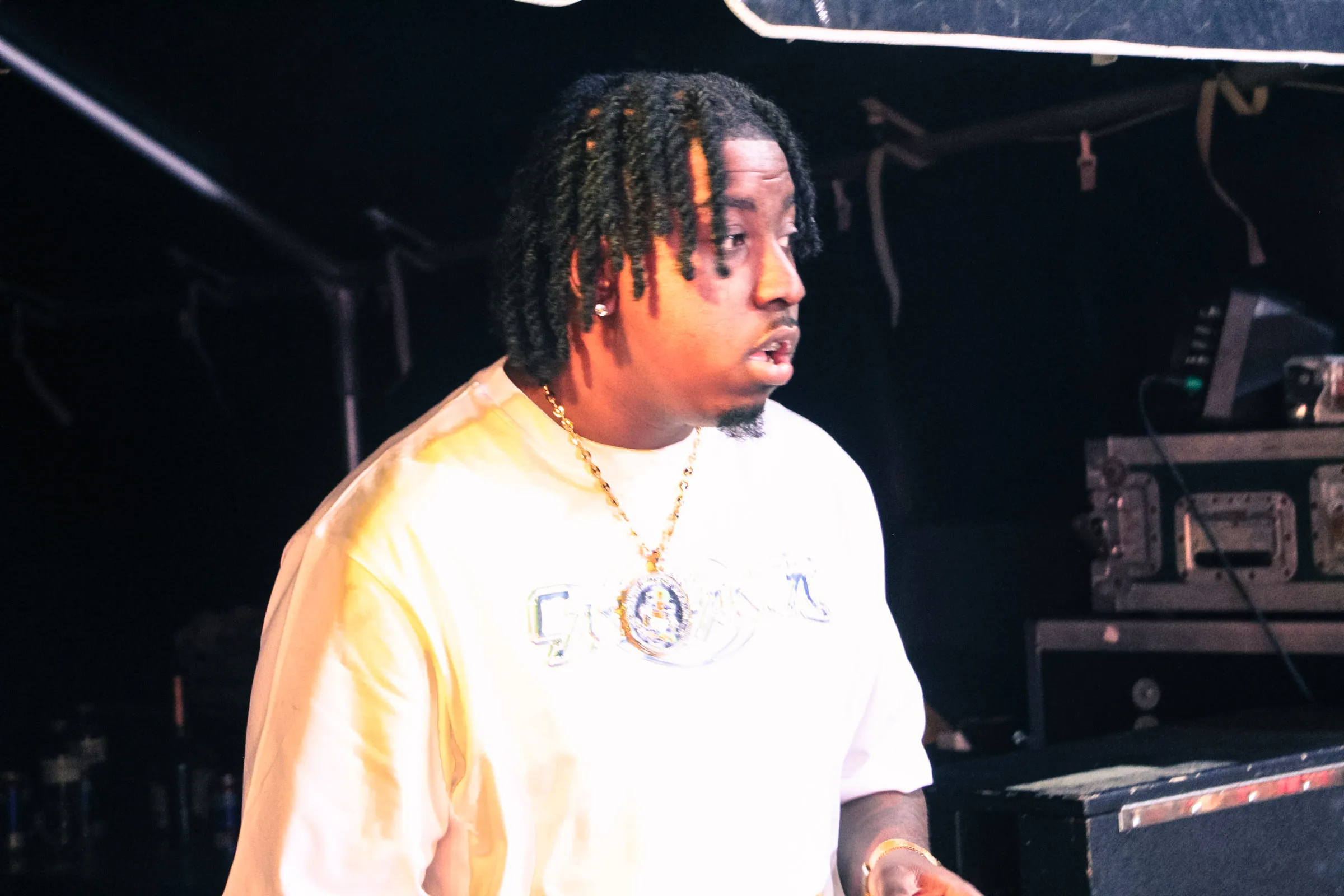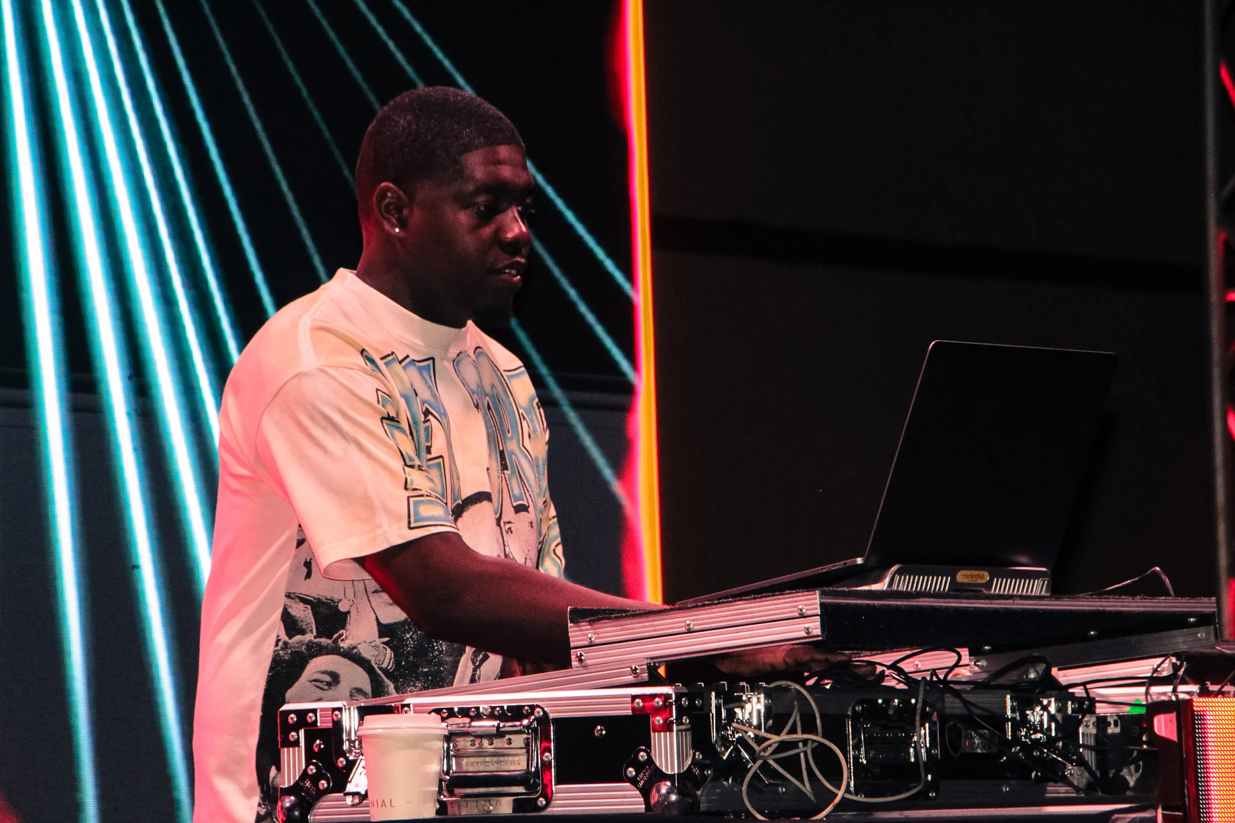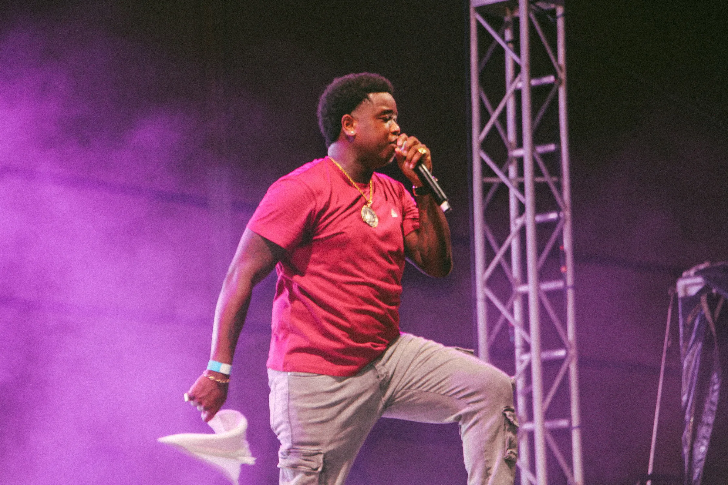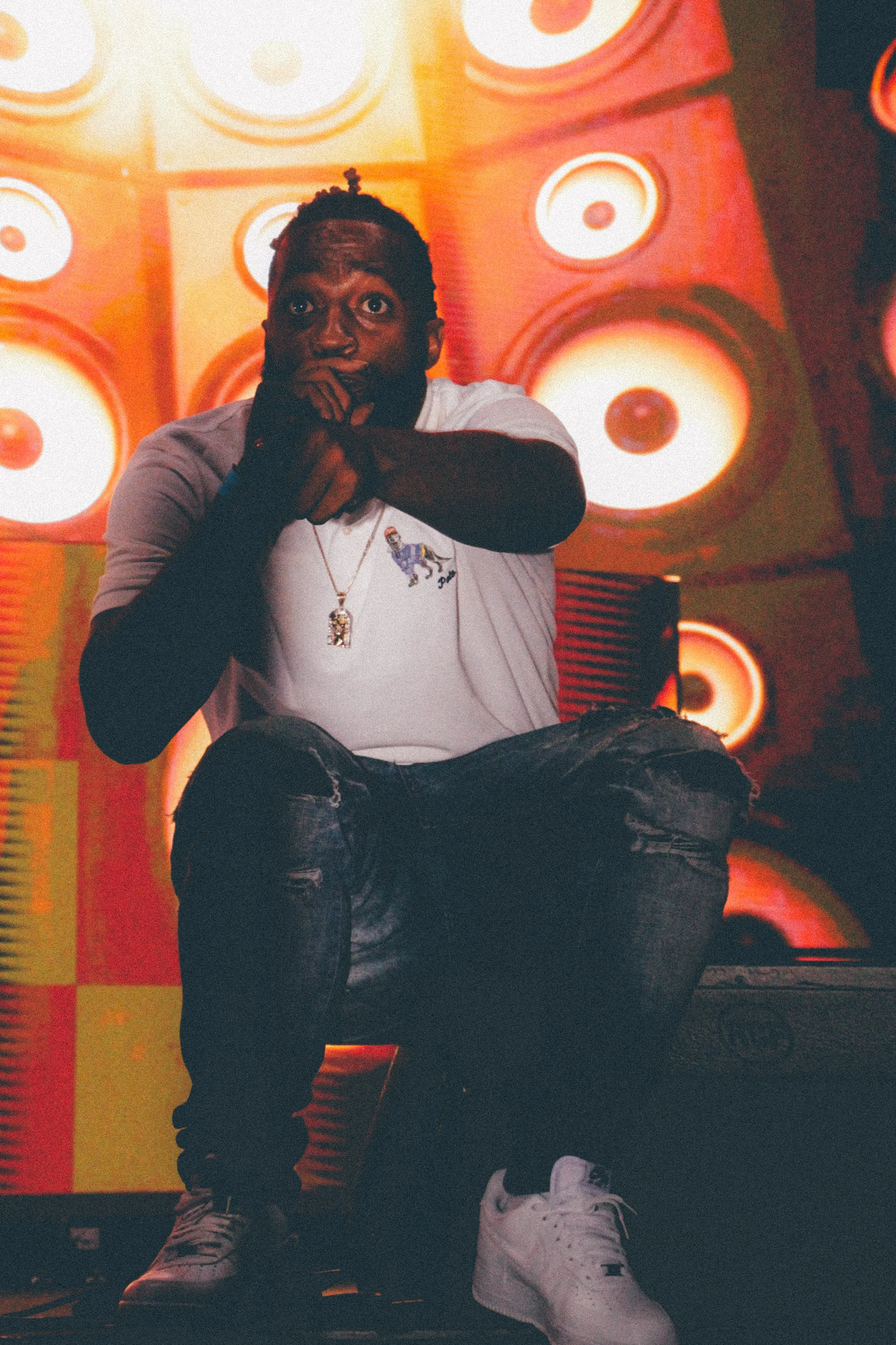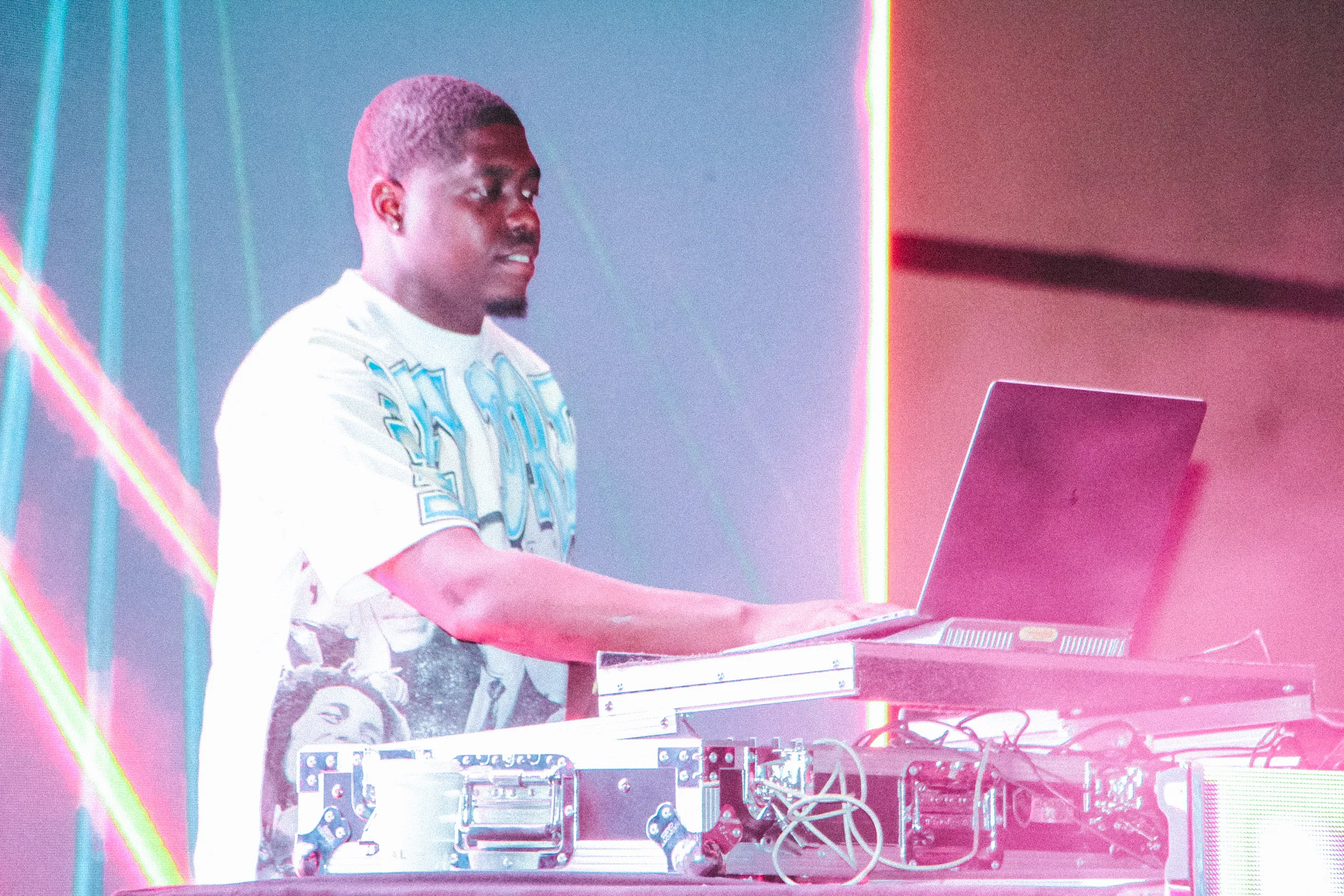 The concert lighting was vivid, bathing the stage in dramatic shades of red and pink, creating a powerful backdrop for Masicka’s high-energy set. He connected with the audience, showcasing his signature flow and stage presence, keeping the energy high throughout the night.